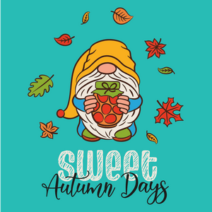 The Teal Cute Gnomes Sweet Autumn Days Fabric Panel is part of the Cute Fall Gnomes Fabric Collection printed by Sewing Parts Online. Digitally Printed on 100% cotton. This panel is available in 6 different sizes: