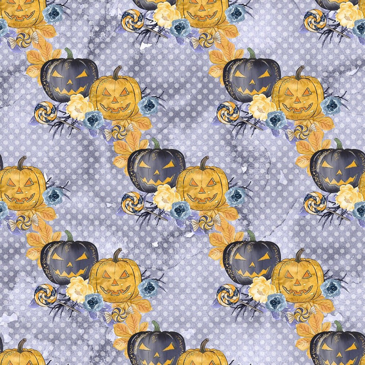 The Blue Cute Halloween Pumpkins on Grunge Fabric is part of Cute Halloween Fabric Collection printed by Sew Creative Fabrics. Digitally Printed on 100% cotton.