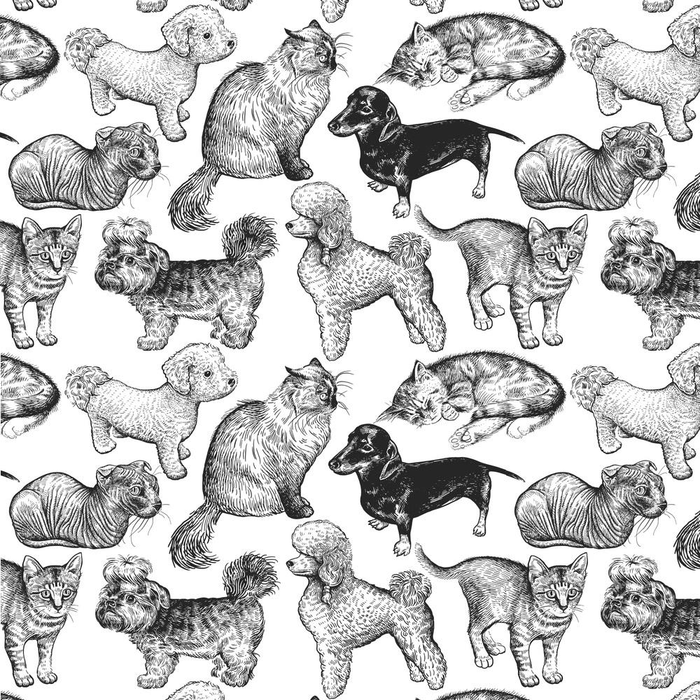 Cute Kitten and Puppy Fabric - White Details