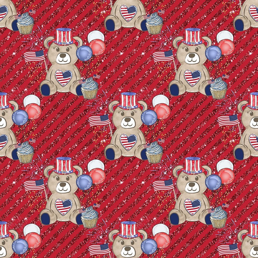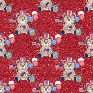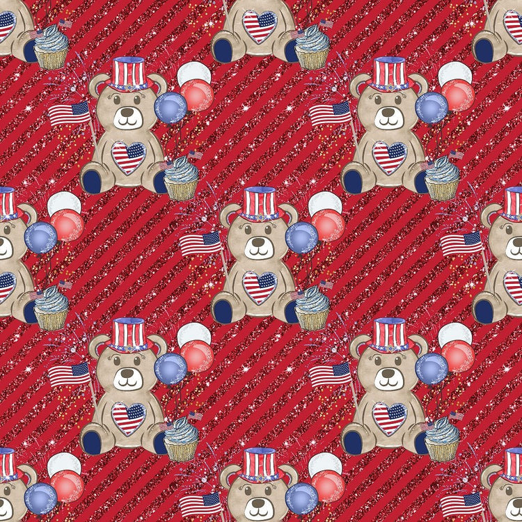 The Red Cute Patriotic Bears on Stripes Fabric is part of the Cute Patriotic Bears Fabric Collection printed by Sew Creative Fabrics. Digitally Printed on 100% cotton.