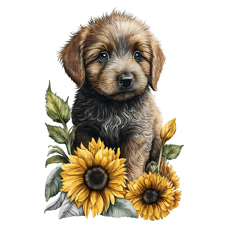 Cute Puppies & Sunflowers #10 Fabric Panel