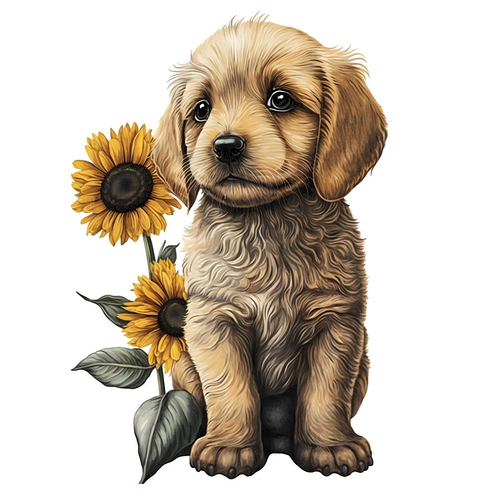Cute Puppies & Sunflowers #11 Fabric Panel
