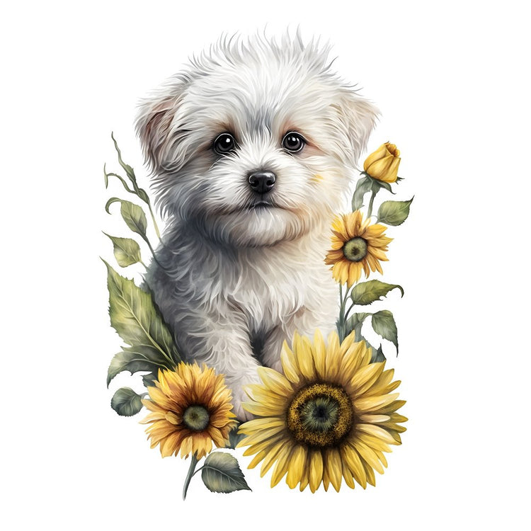 Cute Puppies & Sunflowers #8 Fabric Panel
