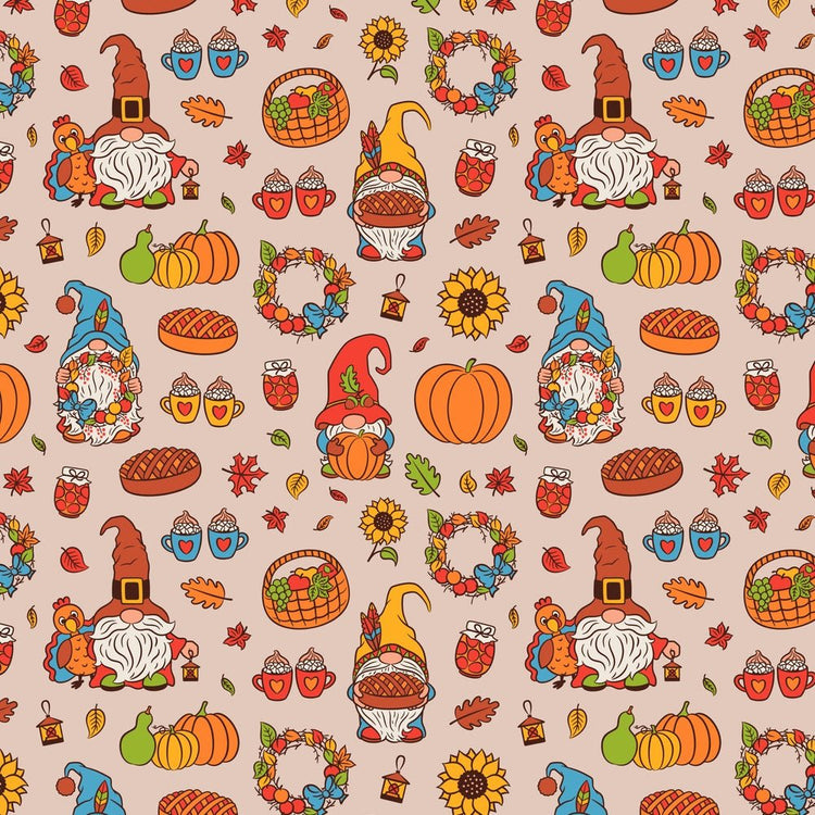 Cute Thanksgiving Gnomes Fabric - Tan Details