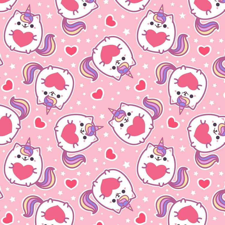 Cute Unicorn Cat With Heart Fabric - Pink
