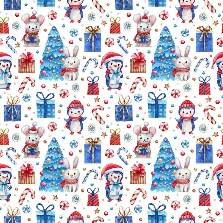 The Cute Watercolor Animals & Elements Fabric is a part of the Watercolor Christmas Stories Fabric Collection printed by Sew Creative Fabrics. Digitally Printed on 100% cotton.