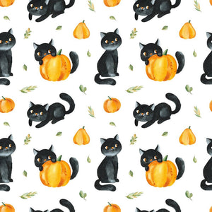 The Cute Watercolor Black Cats & Pumpkins Fabric is part of the Watercolor Halloween Fabric Collection printed by Sew Creative Fabrics. Digitally Printed on 100% cotton.