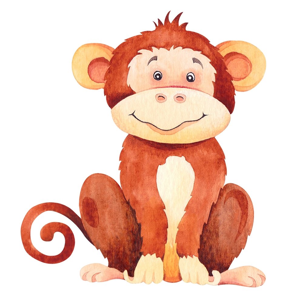 The Cute Watercolor Monkey Fabric Panel is part of the Watercolor Cute Safari Animals Fabric Collection printed by Sewing Parts Online. Digitally Printed on 100% cotton. This panel is available in 6 different sizes: