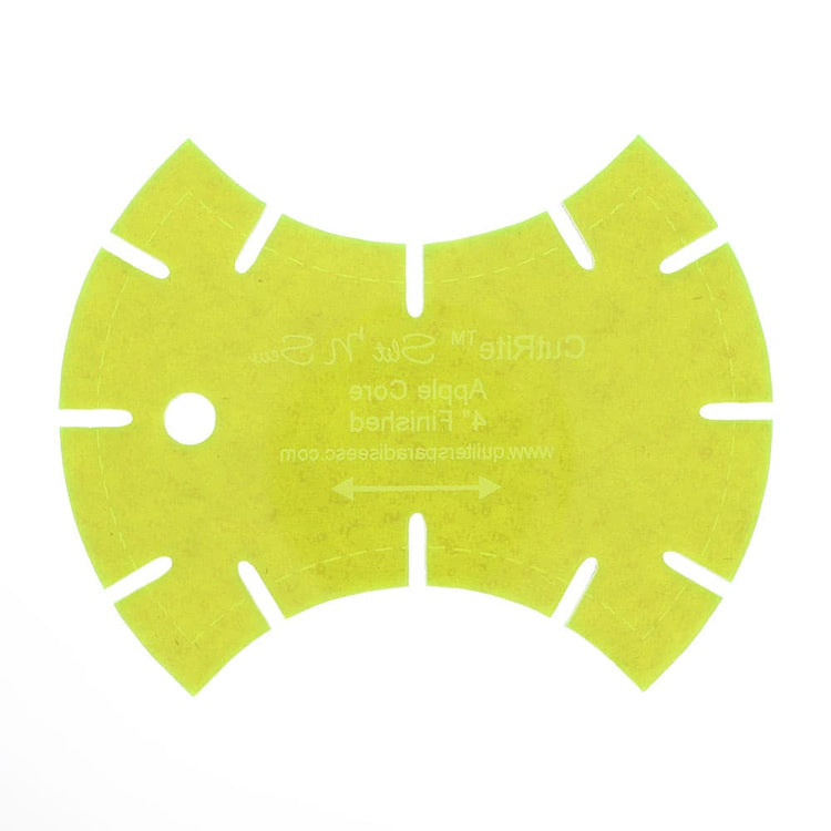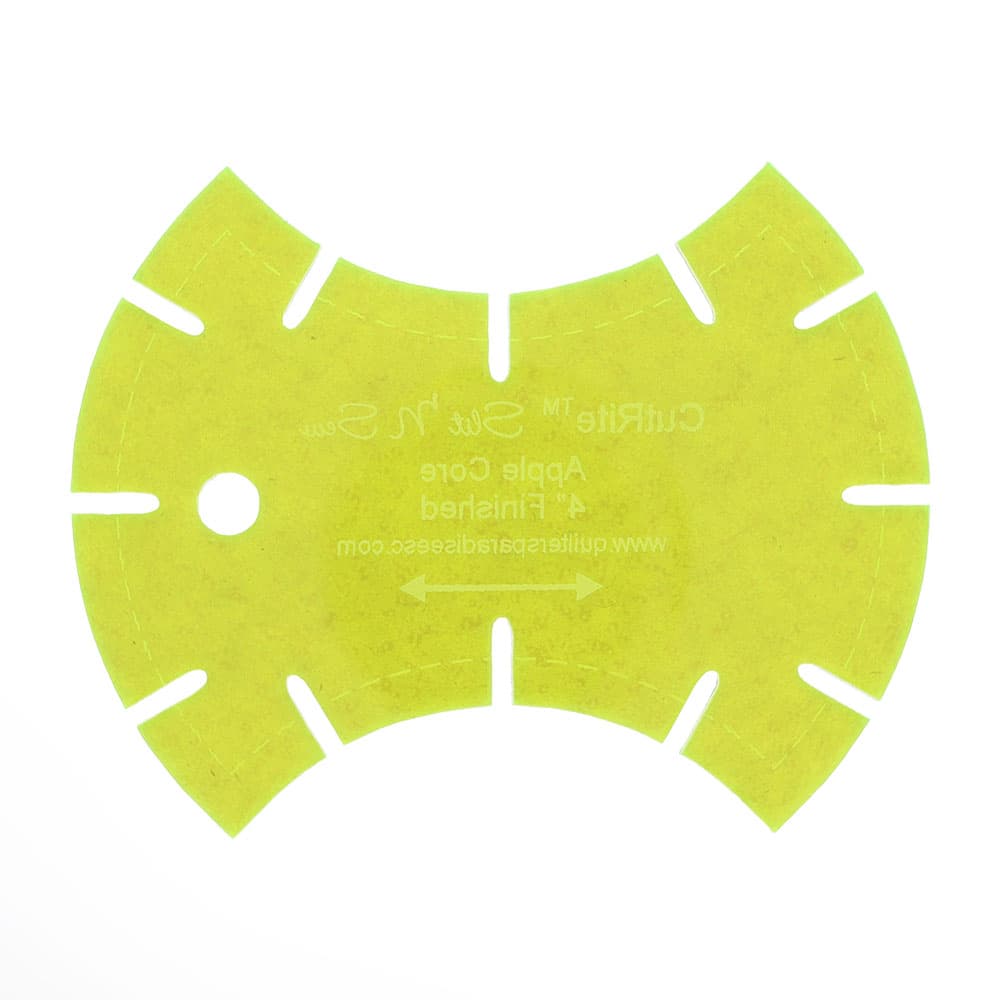 When you are ready to start sewing your pieces together, you will advance a slit at a time. Line up the next slit from each piece that is being stitched together and sew to that slit and repeat until finished. Each template also features CutRite HandiGrabber material that prevents the ruler from slipping when cutting. The CutRite, Slit 'N Sew Apple Core Template, is made of durable acrylic and produced in the USA.