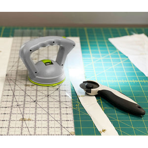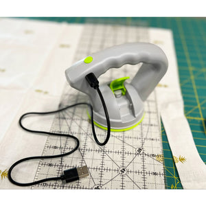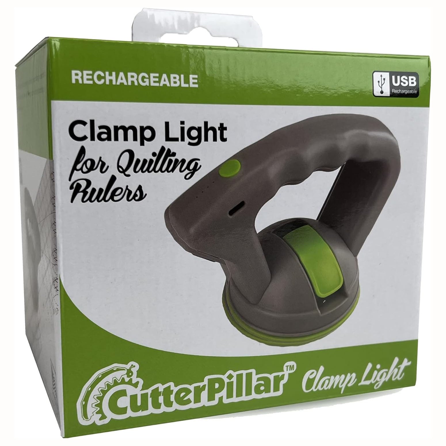 Cutterpillar Clamp Light For Quilting Rulers is a tool that every quilter and crafter needs. This clamp gives you significantly more leverage on your quilting ruler by holding with your arm versus your hand/fingers. Cuts will be much straighter and safer. The Clamp Light For Quilting Rulers keeps your fingers away from the dangerous cutting edge. Besides giving you better leverage, the clamp also has a built-in LED light that gives you illumination where you need it most. The LED light is a huge bonus that floods your work area with a bright 100 lumens for many hours with its USB-C rechargeable battery. It even has a toggle to adjust the brightness.