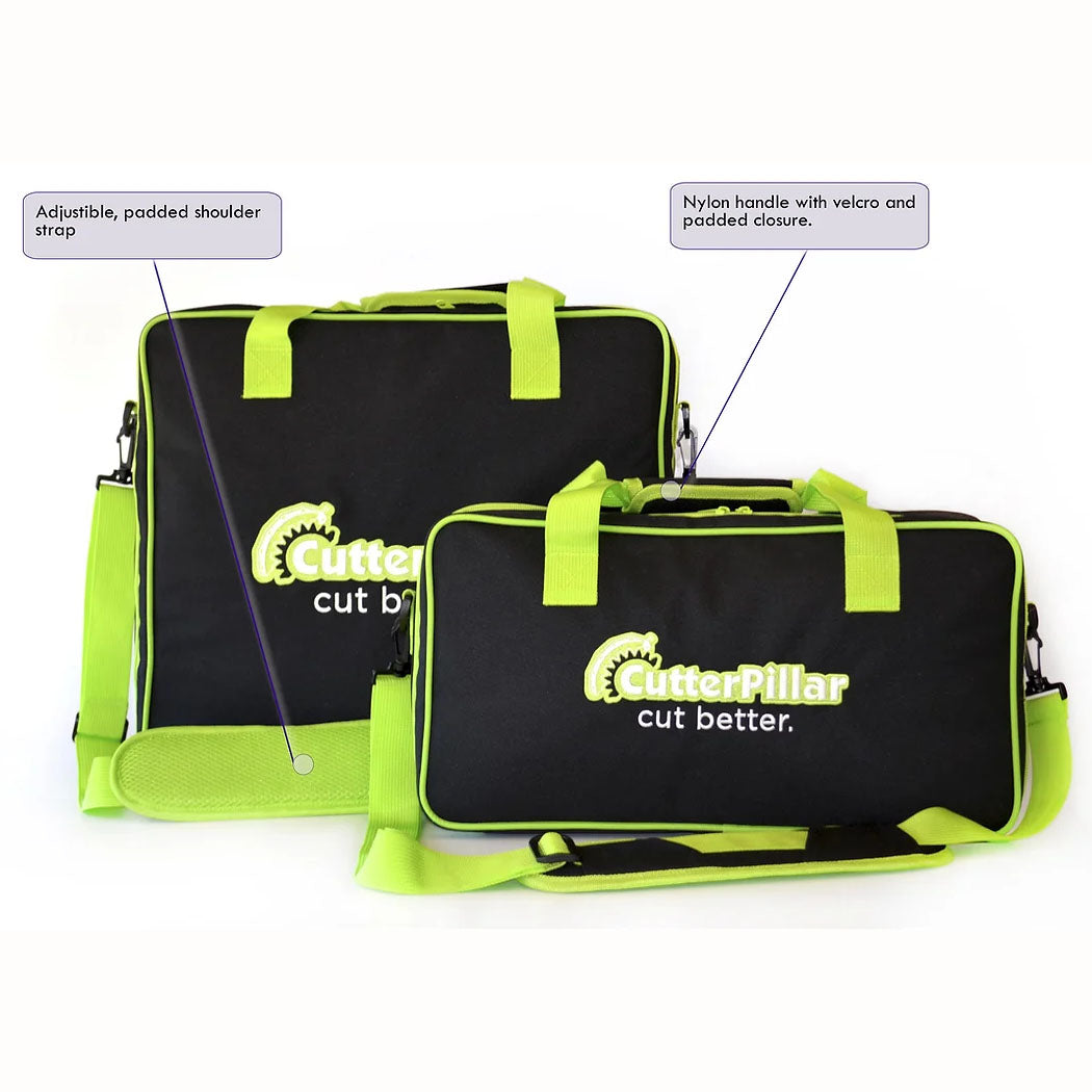 This tote is designed with padded nylon, multiple handles, and straps because we wanted to make transporting your Cutter comfortable, easy, and stylish. This bag comes with a full zipper and an inner pocket. With the padding and velcro handles, you never have to worry about your Crop falling out or being damaged. It has the same features as the Pro tote but for the Crop trimmer. It makes the Crop even more potable. This Tote is designed to fit your Cutterpillar Crop. Dimensions: 9.5" x 17" x 3" **Does NOT fit the Glow products**