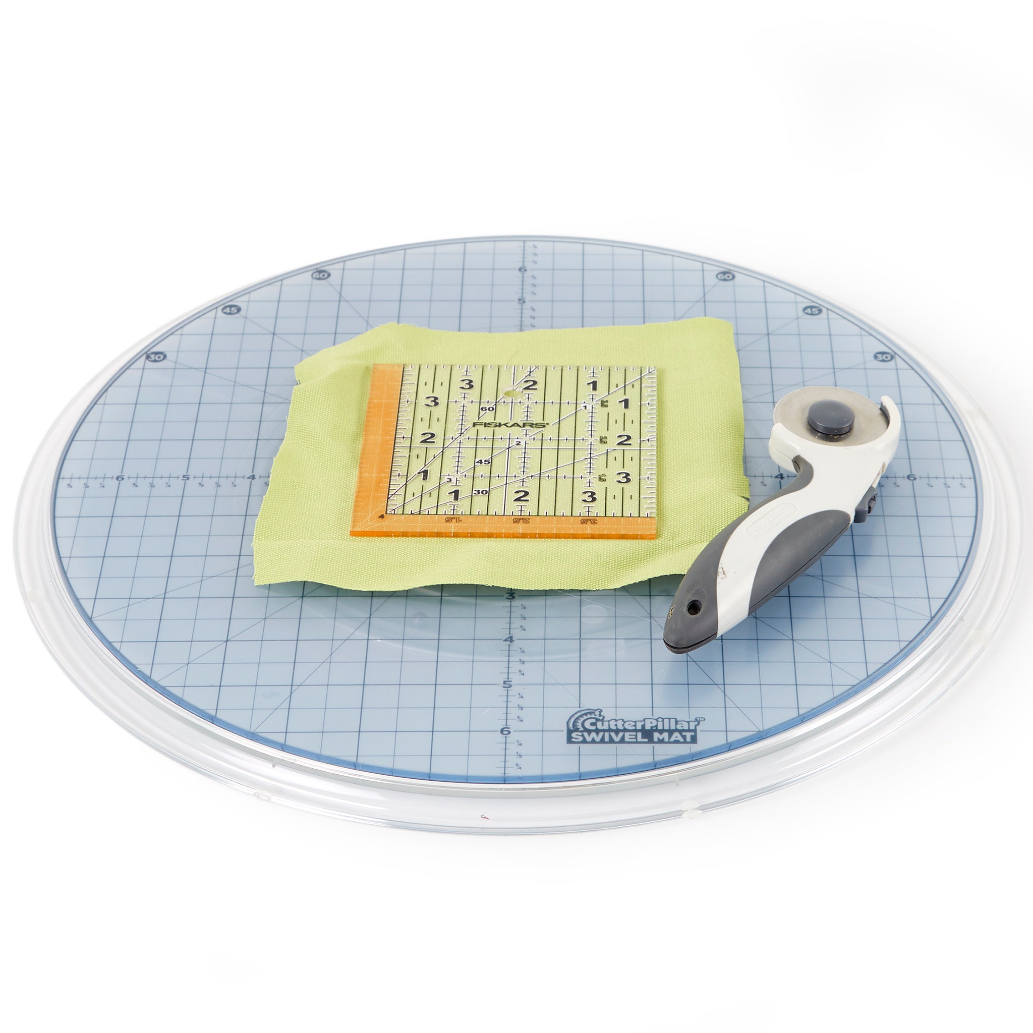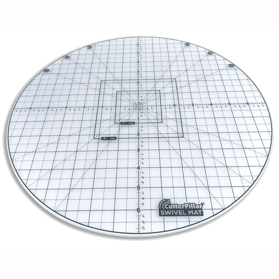 The CutterPillar Round PVC Replacement Mat is the thickest mat you can buy at 3/16". It's super durable and double-sided, so you get the most use out of it. Even with its self-healing qualities, there are minimal effects on the mat's translucency. You can use this mat while quilting, crafting, scrapbooking, and more. The Replacement PVC Mat measures approximately 14" and features ruler measurement marks with fractions printed next to them, standard quilting angles, vertical and horizontal rulers, and common squares. Replaceable cutting mats make the Swivel a reliable and valuable tool for years to come.