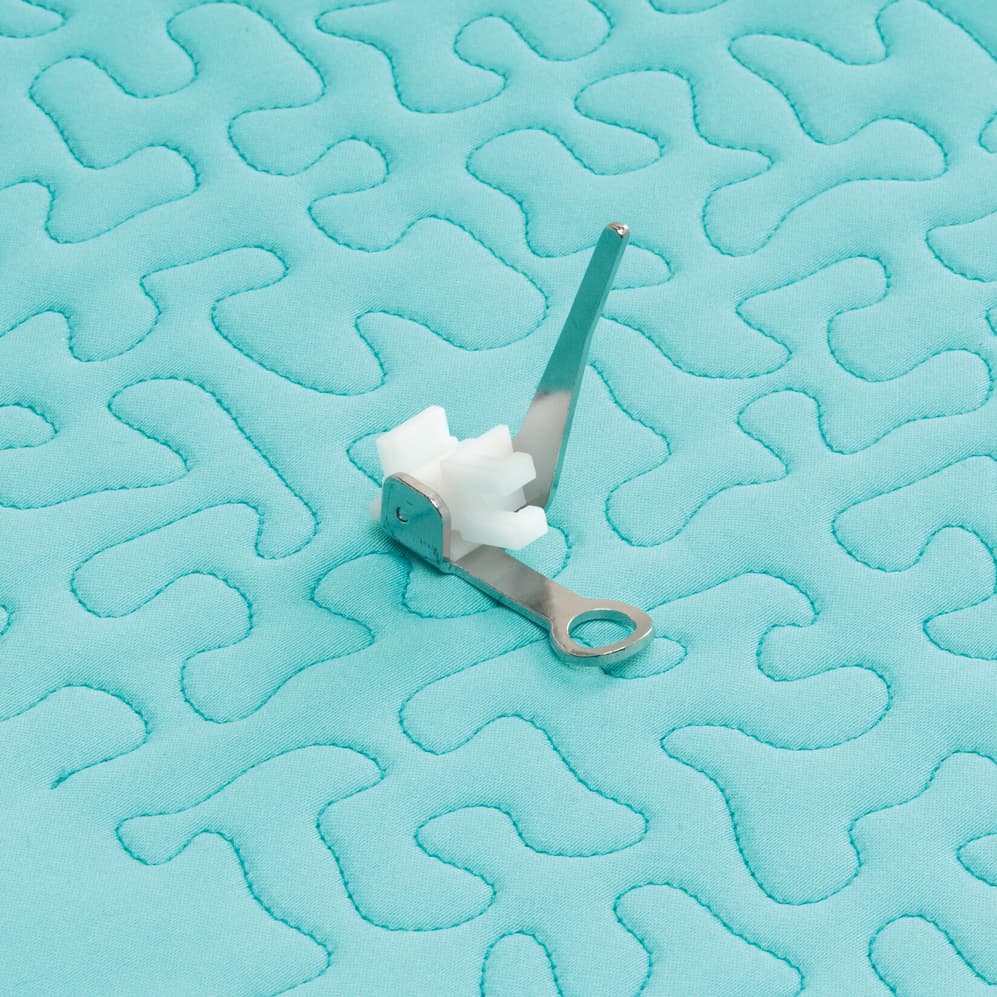This convenient foot with a guide offers excellent visibility and control. Keep fabric flat and under control while darning. This foot is great to use while performing stippling, meandering and thread-painting techniques simply and precisely.
