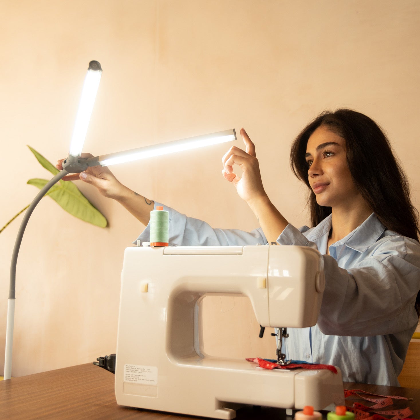 Position your light exactly where you need it with the flexible arm, and enjoy effortless mobility thanks to its lightweight yet sturdy construction. The DuoPro adapts seamlessly to any task or environment with four adjustable brightness settings, letting you create the perfect lighting atmosphere for sewing, reading, or crafting. With a 59-inch cable and a height of 23 inches, it’s as practical as it is elegant—combining professional performance with modern style to enhance every creative project.