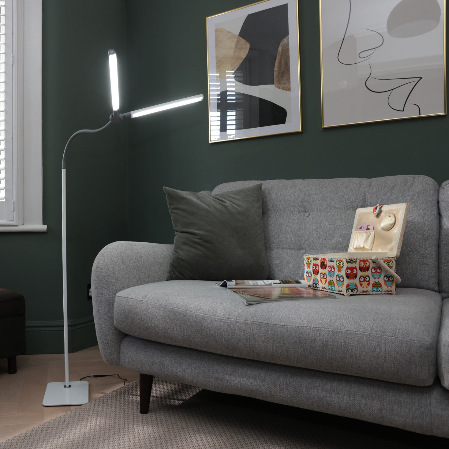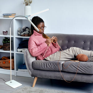 Experience exceptional clarity and color accuracy with the Daylight DuoPro Floor Lamp, designed to elevate your creative workspace. With its innovative twin-shade design, the DuoPro maximizes your illuminated area, reducing shadows and giving you brilliant, even light across your sewing table, cutting mat, or workstation. Featuring high-performance LEDs with a 95+ Color Rendering Index (CRI), this lamp ensures every thread, fabric, and detail appears true to color—perfect for precision work like quilting, embroidery, or fine art.