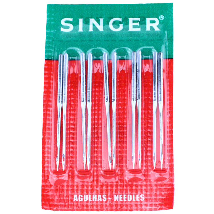 Genuine Singer Ball Point Needles, size 90/14 have a round shank. These ballpoint/stretch needles are the ideal needle for lightweight knit fabrics such as suede, fleece, and stretchy swimsuit material. The ballpoint tip and slender shaft of these needles cause less damage and are less abrasive making them perfect for these types of knit fabrics.