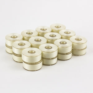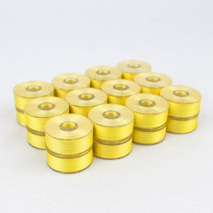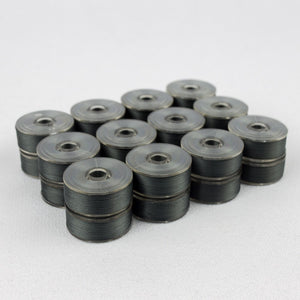 Get more consistency in your stitches with these Wonderfil DecoBob Prewound Bobbins. Since they are uniformly wound, these bobbins have a higher density than if you had wound them with your domestic machine. This uniformness is especially handy when embroidering. Wonderfil's bobbins are wound with 80-weight Decobob thread on a reusable plastic bobbin, so there won't be any glue or wax holding it together to gum up your machine. These M style bobbins come 24 to a pack with each bobbin containing 210-yards of thread. Choose from 33 different colors to best suit your sewing project.