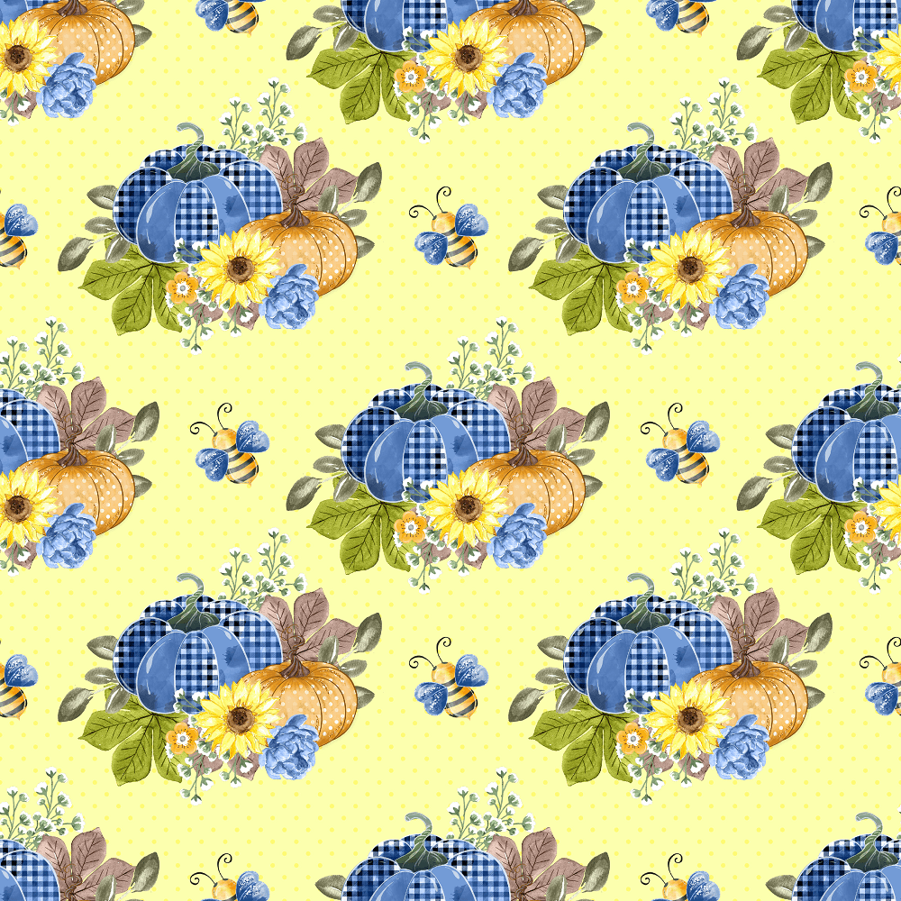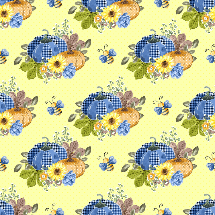 The Yellow Decorative Pumpkins & Polka Dots Fabric is part of the Buzzin' Around The Patch Fabric Collection printed by Sew Creative Fabrics. Digitally Printed on 100% cotton and measures 43-44" wide.