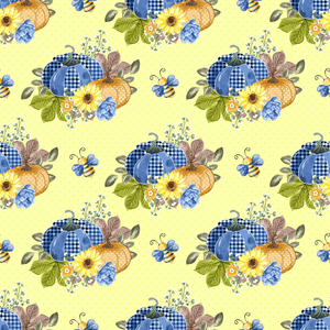 Decorative Pumpkins & Polka Dots Fabric - Yellow