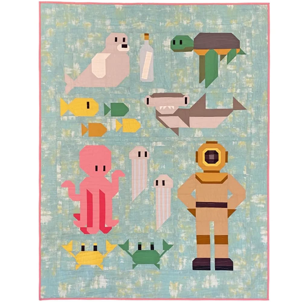 The Deep Dive Quilt is a fun pattern for any sea lover. This sew-along project by Art East Quilting Co. will include a total of nine blocks to be released once a month from September 2020 to May 2021. At the end of the sew-along, you will have an eye-catching under-the-sea-themed quilt that is sure to bring smiles. Since the Deep Dive Quilt uses conventional piecing techniques, no paper piecing is needed.