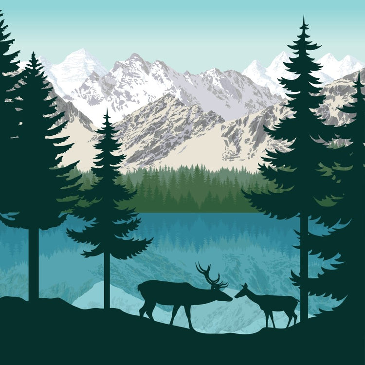 The Deer Near Mountain Lake Fabric Panel is printed by Sewing Parts Online. Digitally Printed on 100% cotton. This panel is available in 6 different sizes: