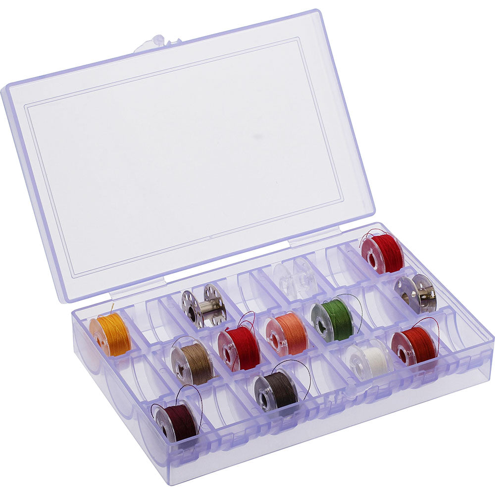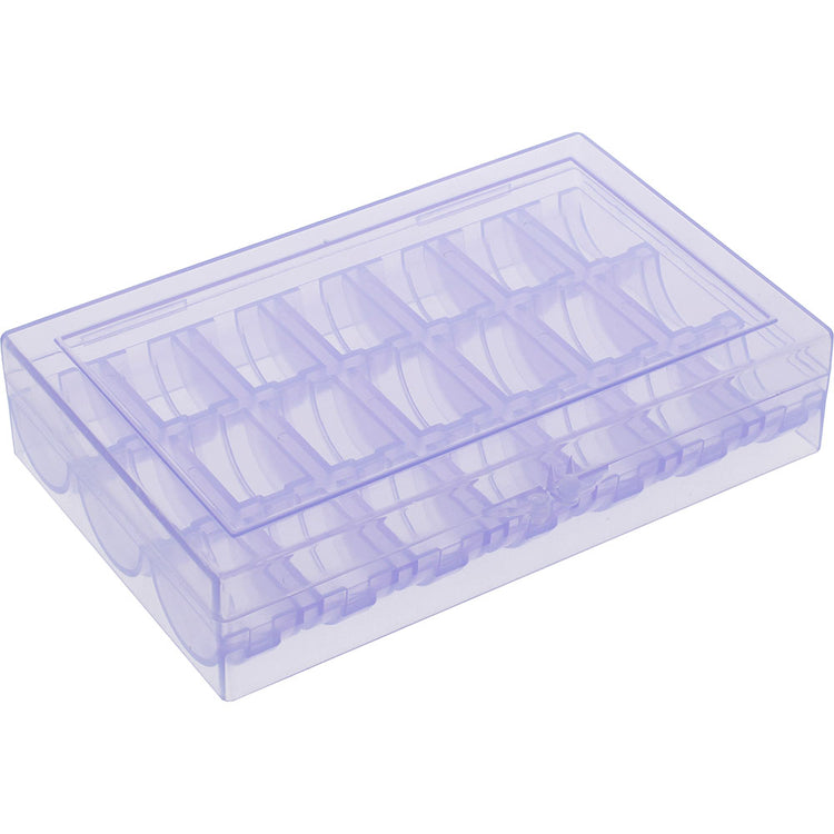 Keep all your bobbins neat in organized by storing them in a Deluxe Bobbin Box. Made out of hard plastic, the purple Deluxe Bobbin Box is also see-through, so you do not have to waste time searching for the right bobbin. Fit up to 21 bobbins in the Deluxe Bobbin Box.