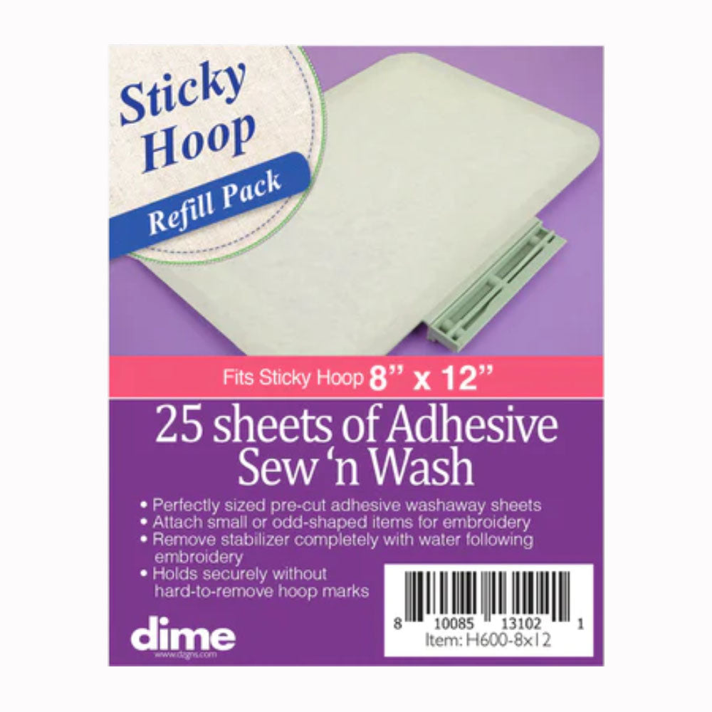 Dime, Sticky Hoop 8" x 12" Sew'n Wash Stabilizer Refill Pack - 25 Sheets Details