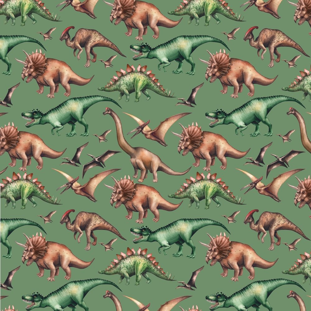The Green Dinosaur Fabric is part of The World of Dinosaurs Fabric Collection printed by Sew Creative Fabrics. Digitally Printed on 100% cotton.