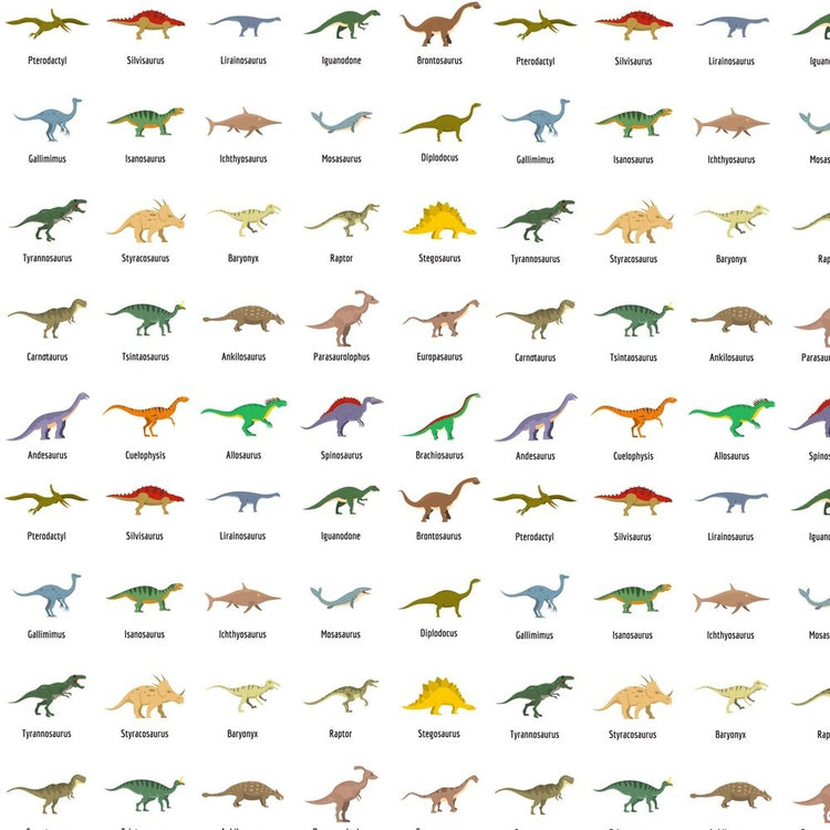 The Dinosaur Names Fabric is part of the Kid’s Playtime Fabric Collection printed by Sewing Parts Online. Digitally Printed on 100% cotton and measures 43-45" wide. Sewing Parts Online prints are only available through Sewing Parts Online, not sold in stores or anywhere else online. * Proudly Manufactured in Dickson, Tennessee USA! *