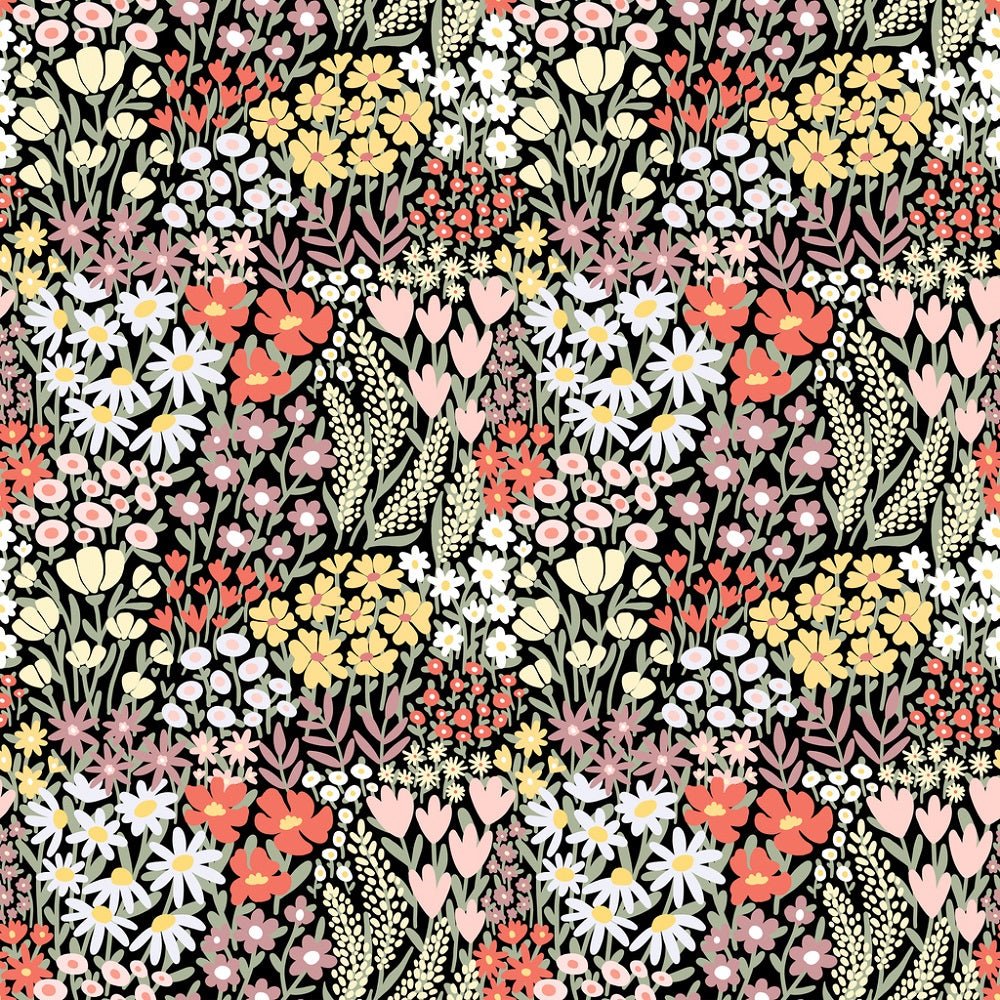 The Black Ditsy Meadow Wildflowers Fabric is part of the Ditsy Meadow Wildflowers Fabric Collection printed by Sew Creative Fabrics. Digitally Printed on 100% cotton.