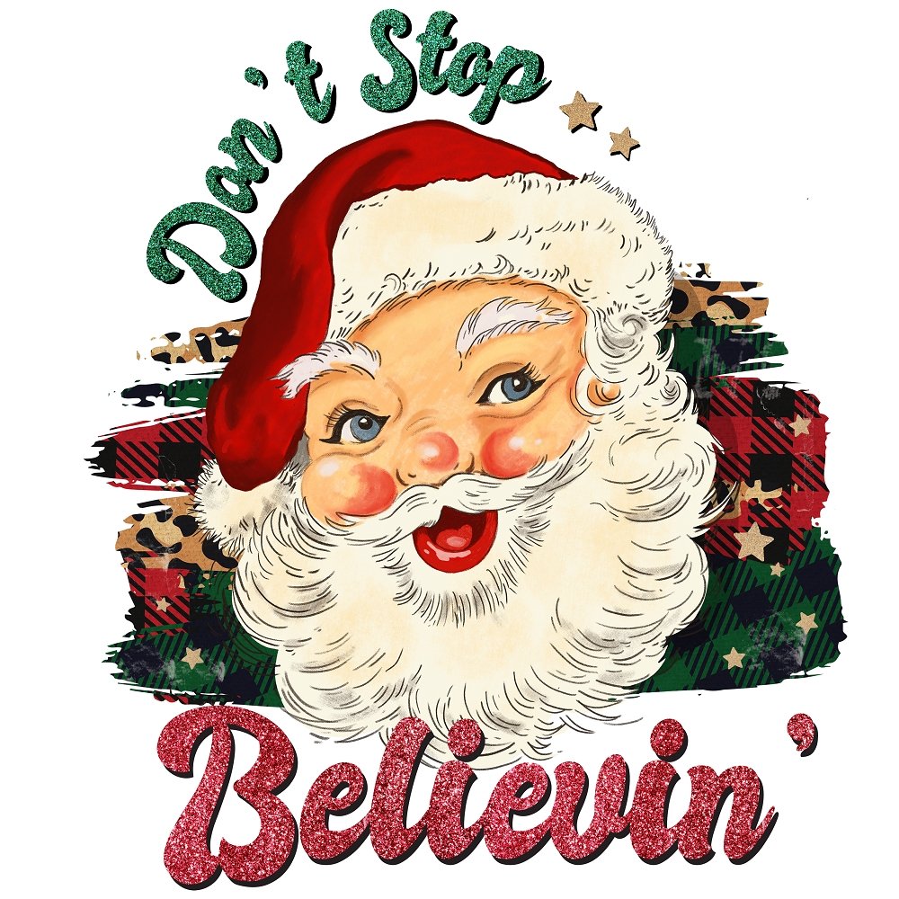 The Don't Stop Believin Santa Fabric Panel is part of the Christmas is Here! Fabric Collection printed by Sewing Parts Online. Digitally Printed on 100% cotton. This panel is available in 6 different sizes: