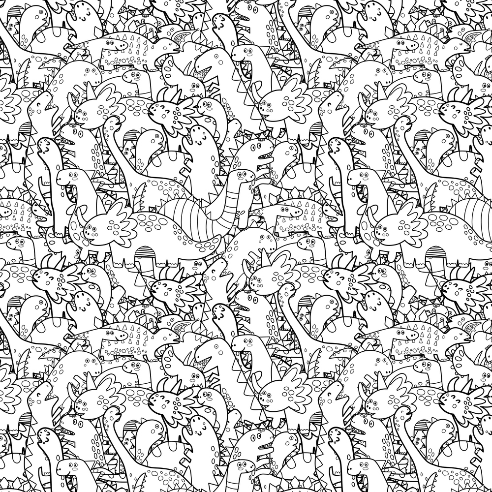 Doodle Dinos Fabric - Black Details