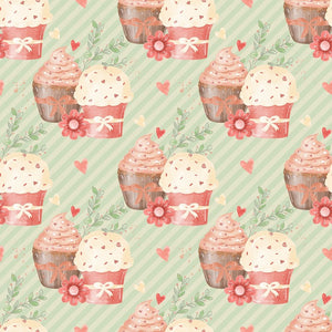 The Green Double Cupcake on Striped Fabric is part of the Sweet Cupcake Fabric Collection printed by Sew Creative Fabrics. Digitally Printed on 100% cotton and measures 43-44" wide.