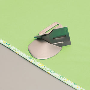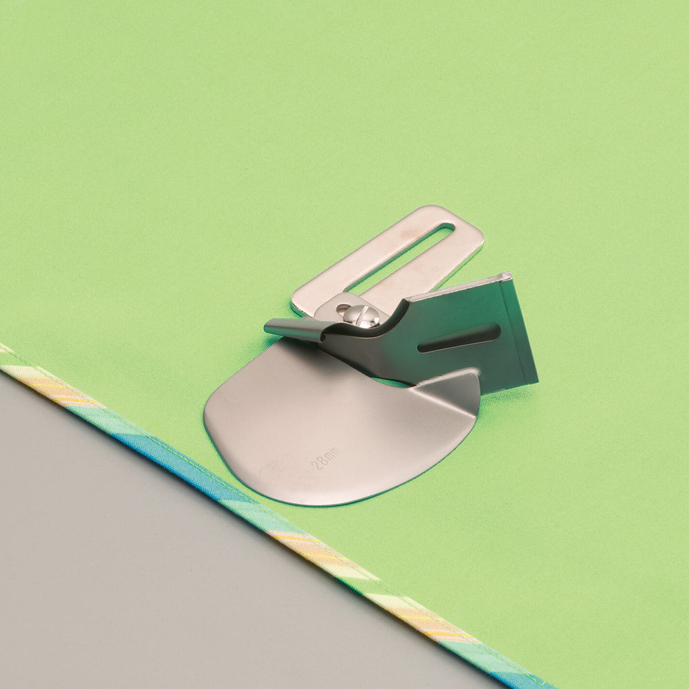 This double fold bias binder will turn fabric strips into binding and attach it to project edges all in one step. Download the instructions on how to use this foot here.