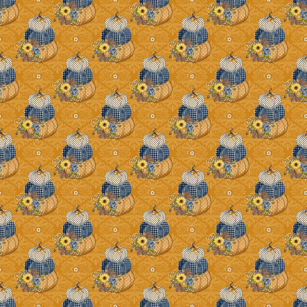 The Orange Dourado Adamascado Stacked Pumpkins Fabric is part of the Buzzin' Around The Patch Fabric Collection printed by Sew Creative Fabrics. Digitally Printed on 100% cotton and measures 43-44" wide.
