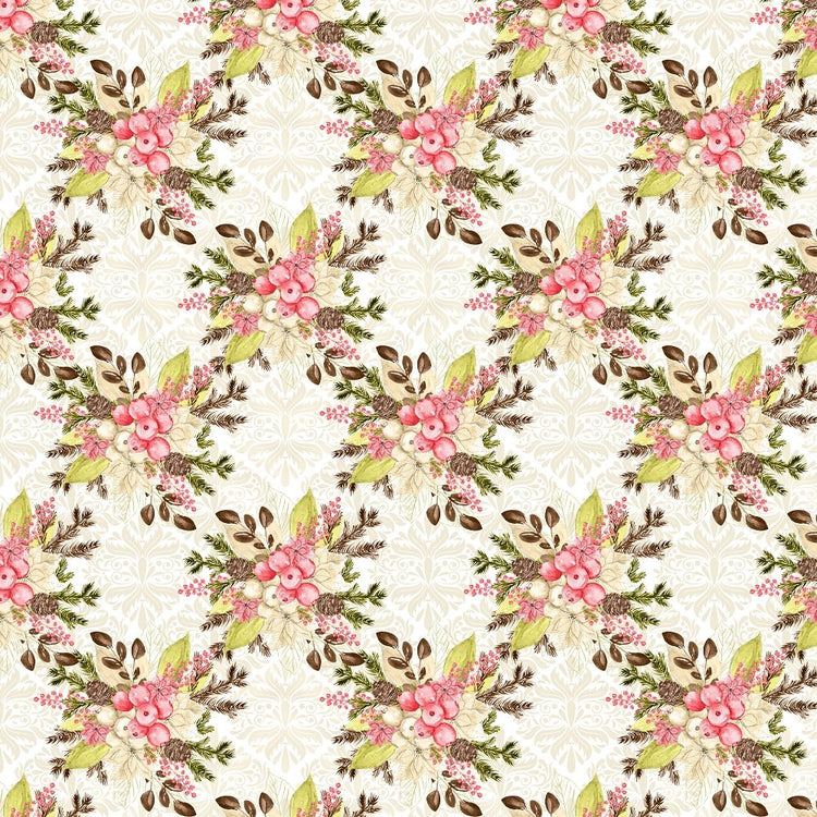 Dourado Adamascado Winter Poinsettia Fabric - Tan Details