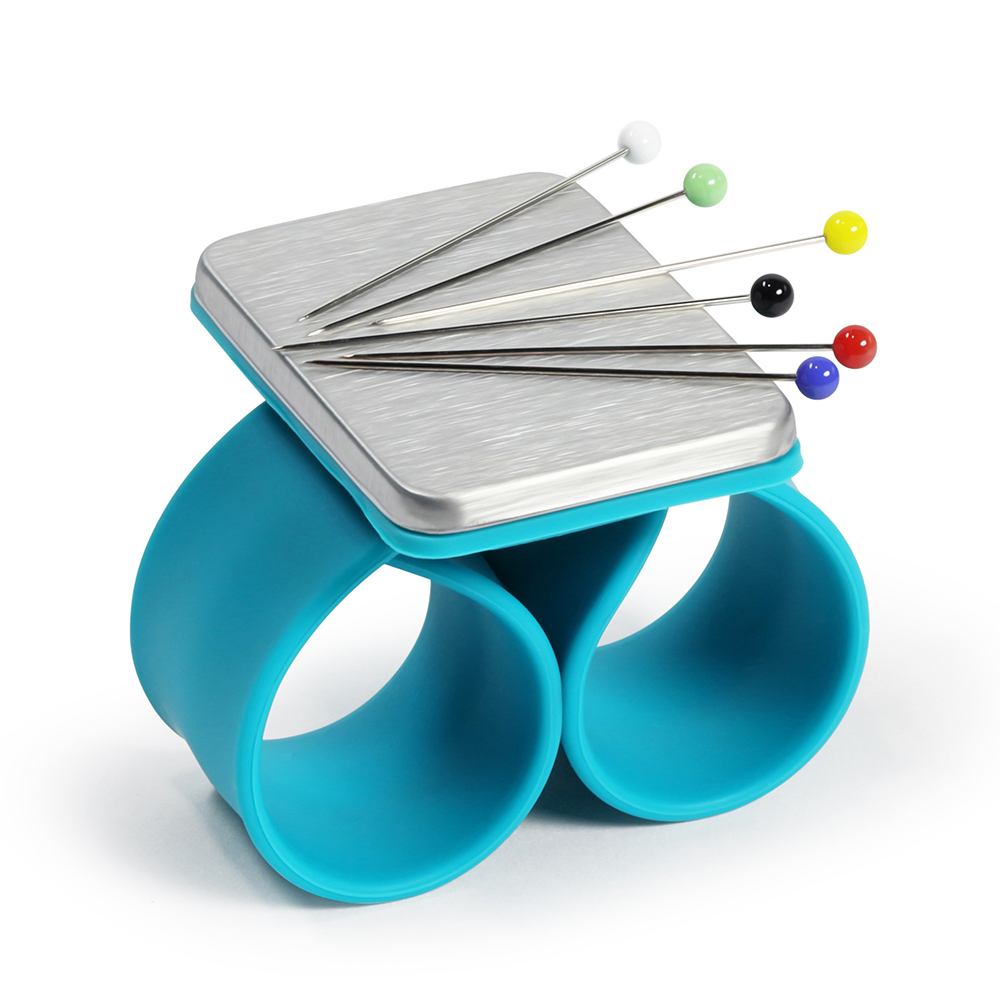 Keep your pins close at hand with Dritz's Magnetic Wrist Pin Holder. This flexible silicone-covered wristband easily wraps around your wrist for a comfortable fit. The silicone band measures 1-1/8" wide by 9-7/16" long and stays securely in place. The sizeable magnetic surface holds and catches pins and needles as you work. Pins not included.