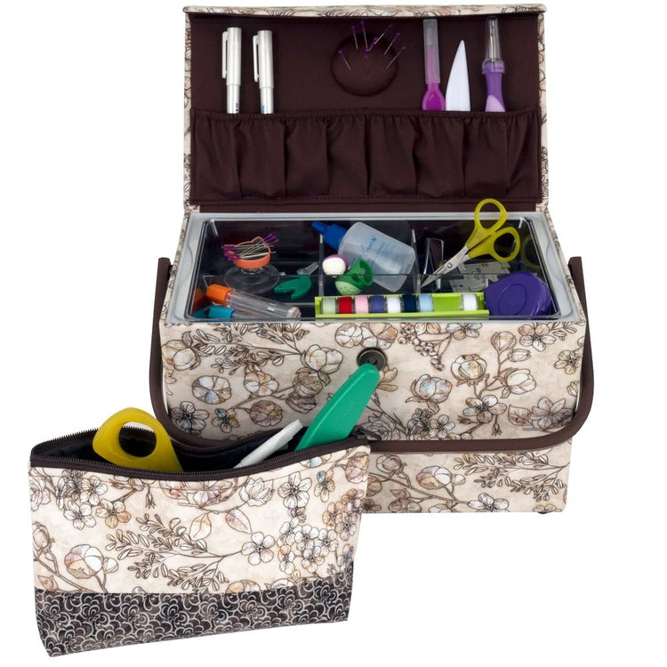 Dritz, Medium Sewing Basket & Accessory Case - Neutral Floral