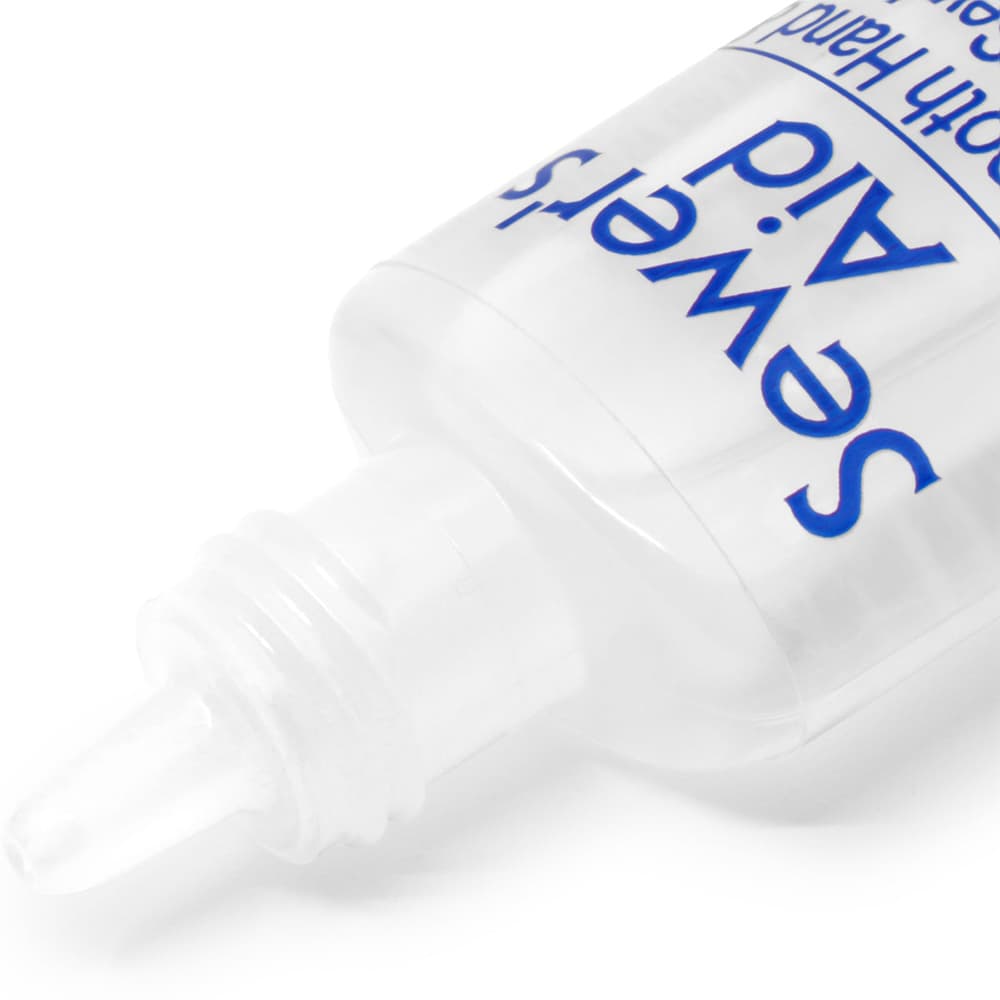 Dritz Sewer's Aid is also handy for use with scissors. Simply squeeze a drop onto your blades for smoother cutting. Each bottle of Sewer's Aid contains 1/2 oz (14.8ml) of clear lubricant.