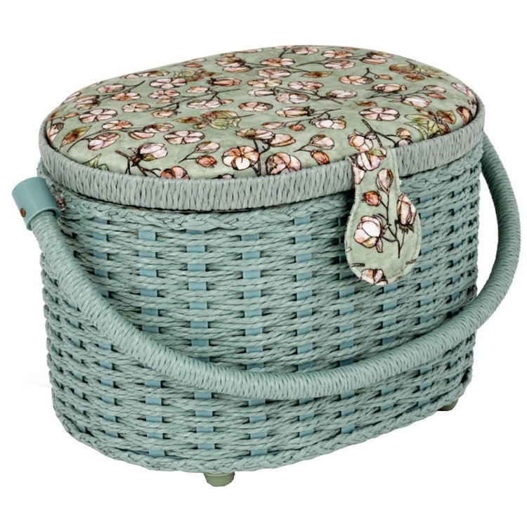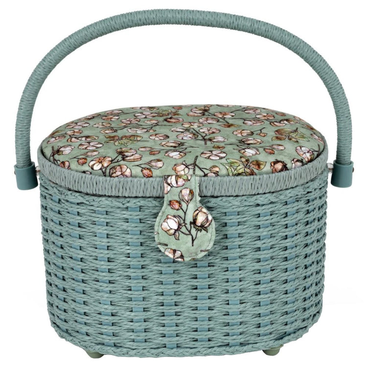Dritz, Small Woven Sewing Basket - Green Floral Details