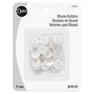 Dritz, White Pearl Blouse Buttons are perfect to have on hand for replacing buttons on blouses, dresses, and other apparel. These buttons have a universal style with a slightly rounded rim, and the white pearl color coordinates with most fabrics. These Dritz, White Pearl Blouse Buttons feature two sewing holes and are washer safe.