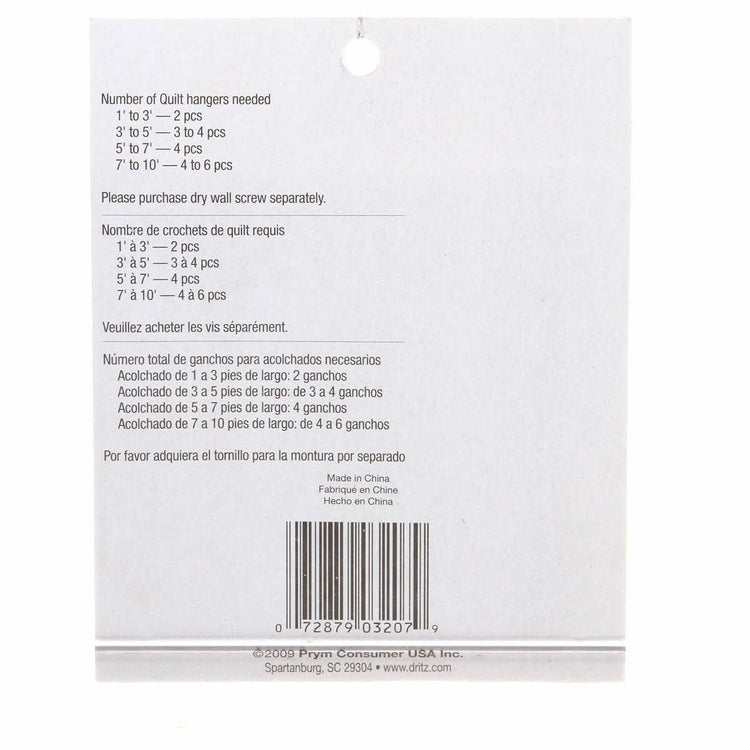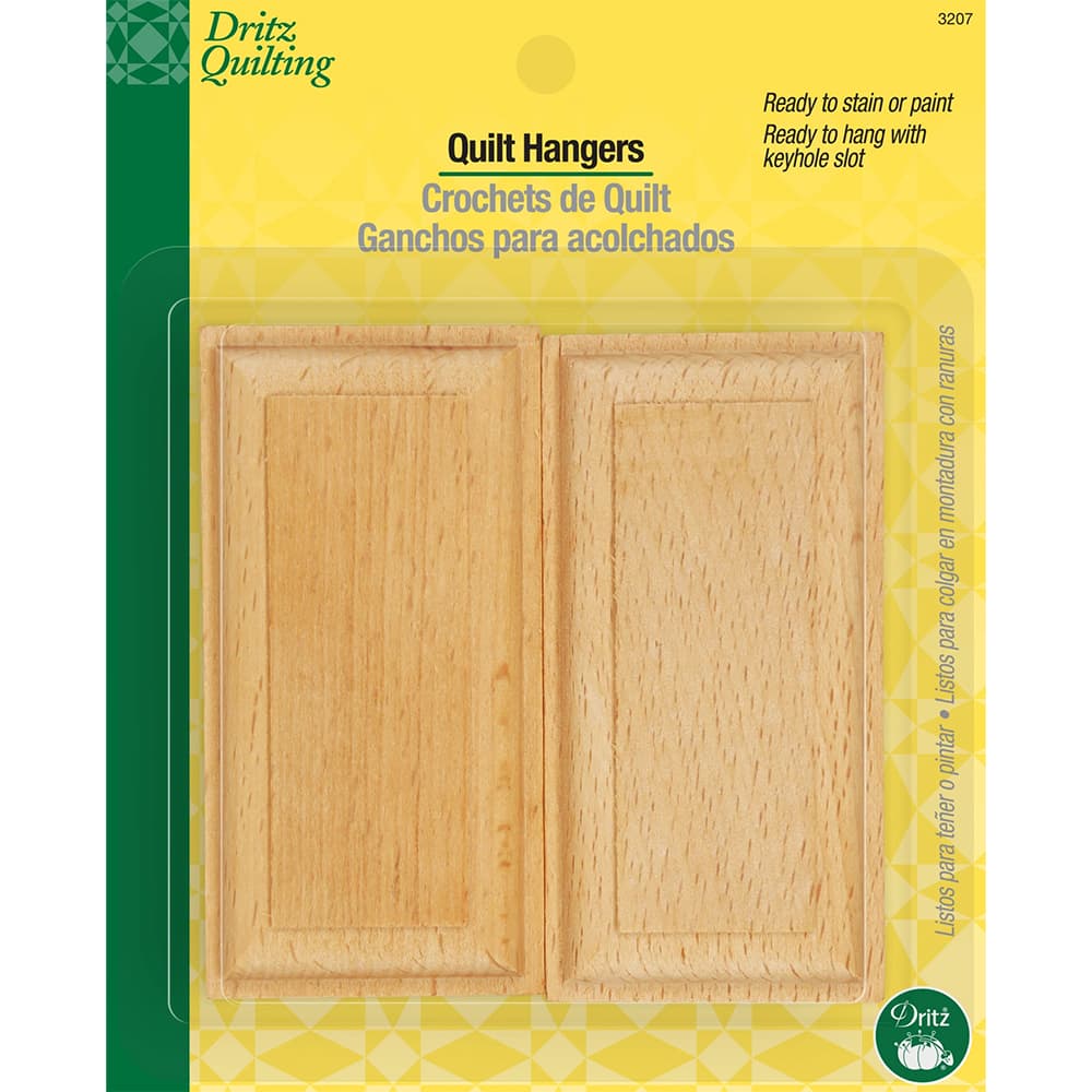 Proudly display your homemade quilts using Dritz Wooden Quilt Hangers. This two pack of Dritz Wooden Quilt Hangers will effortlessly support a small wall quilt measuring one to three feet. Larger quilts require additional Dritz Wooden Quilt Hangers. Customize your quilt hangers by staining or painting them to match your home decor. Dritz Wooden Quilt Hangers require drywall screws (sold separately).