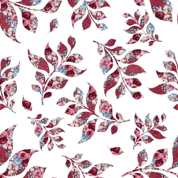 The White Dusty Blue and Burgundy Red Vines Fabric is part of the Dusty Blue and Burgundy Fabric Collection printed by Sew Creative Fabrics. Digitally Printed on 100% cotton.