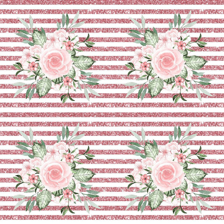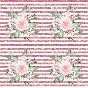 Dusty Rose Garden Bouquets on Pink Stripes Fabric
