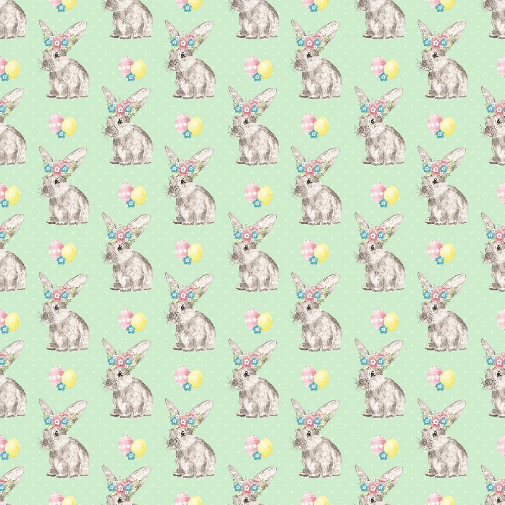The Green Easter Bunny on Polka Dot Fabric is part of the Pastel Easter Day Fabric Collectin printed by Sew Creative Fabrics. Digitally Printed on 100% cotton and measures 43-44" wide.
