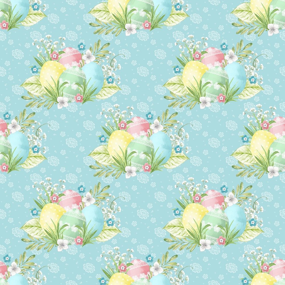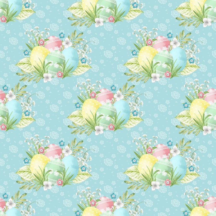 The Blue Easter Eggs on Dainty Floral Fabric is part of the Pastel Easter Day Fabric Collection printed by Sew Creative Fabrics. Digitally Printed on 100% cotton and measures 43-44" wide.