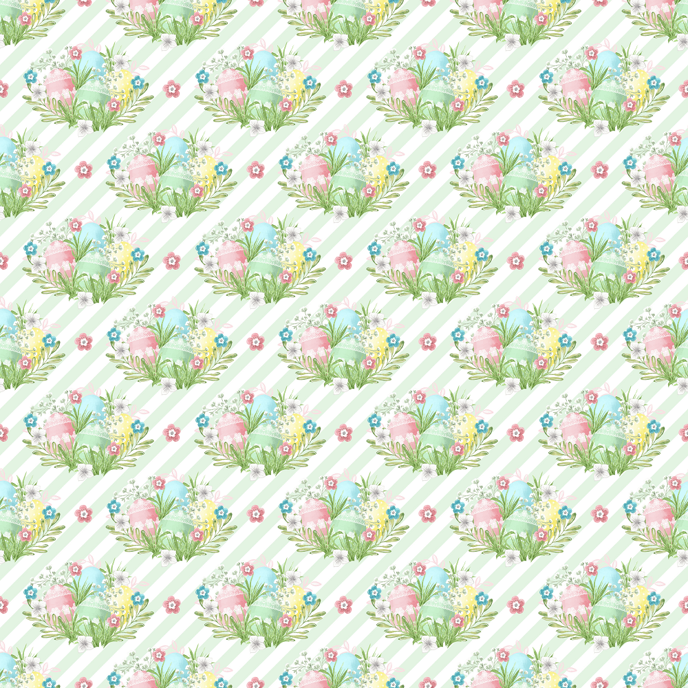 Easter Eggs on Horizontal Striped Fabric - Green Details