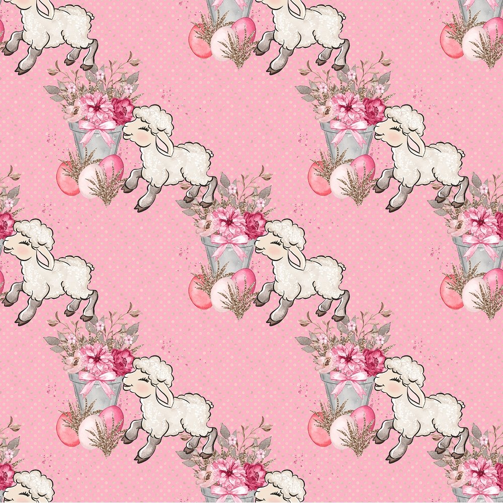 The Light Pink Easter Flowers & Lamb on Polka Dots Fabric is part of the Easter Lamb Fabric Collection printed by Sew Creative Fabrics. Digitally Printed on 100% cotton.