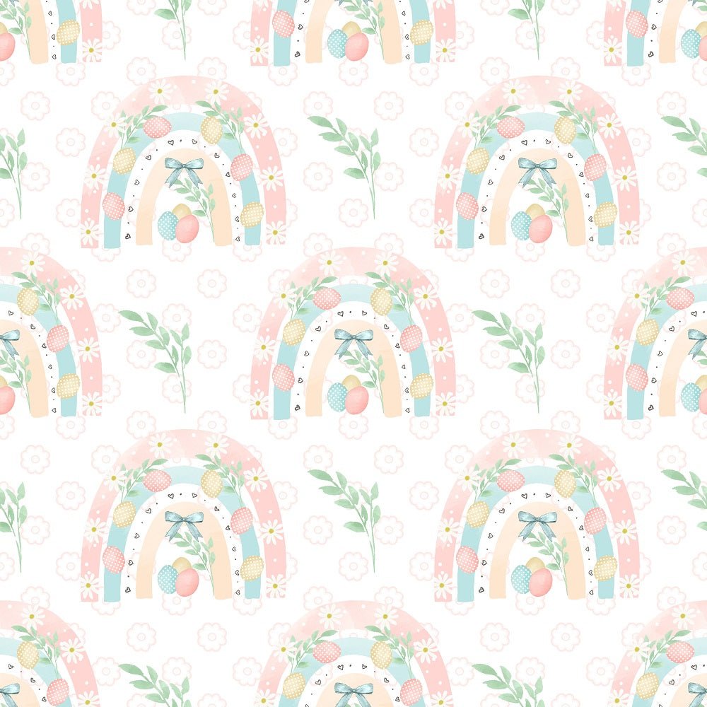 The White Easter Rainbow Gnomes Rainbows Fabric is part of the Easter Rainbow Gnomes Fabric Collection printed by Sew Creative Fabrics. Digitally Printed on 100% cotton.