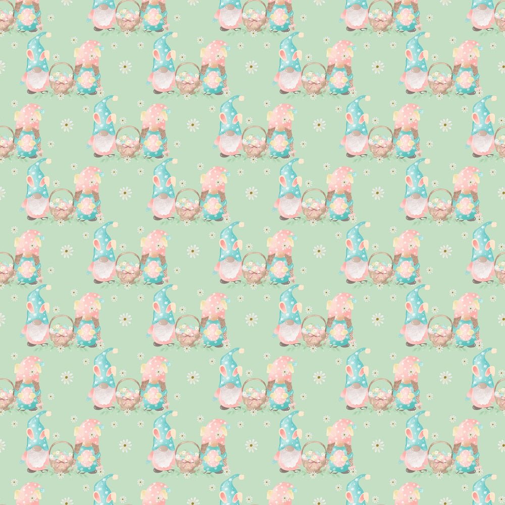 Easter Rainbow Gnomes with Basket Fabric - Green Details